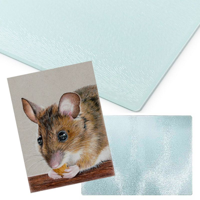 Hard-wearing textured glass 0.16 4mm Anti-slip clear rubber feet at each corner, heat resistant. 15" x 11" 390x285mm