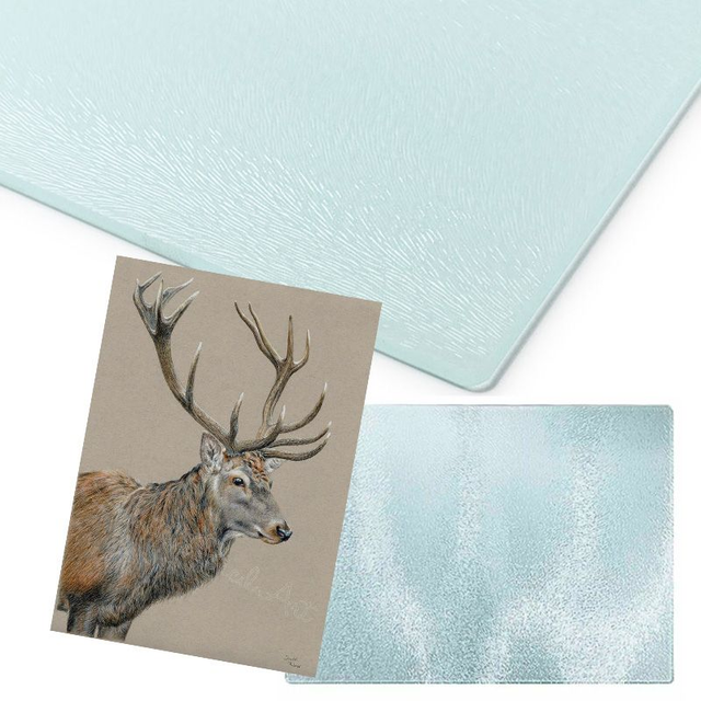 Hard-wearing textured glass 0.16 4mm Anti-slip clear rubber feet at each corner, heat resistant. 15" x 11" 390x285mm